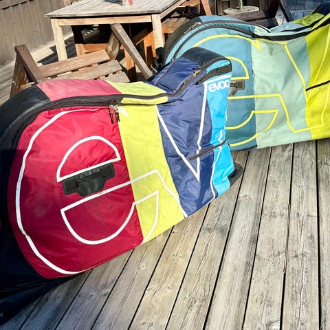 Kompakt väska för cykeltransport, fungerar bra att checka in på flyget.