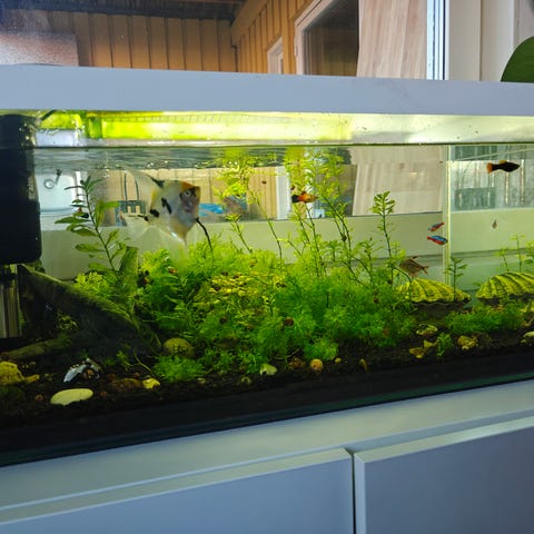 240L med mått 120x50x40cm, inbyggd bakgrund, ingår led lampa, innerfilter. Väldigt bra skick utan några repor. Kan skicka med några malawi ciklider. Finns att hämta i Hisingen