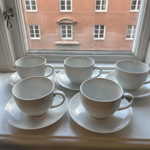 Arabia Arctica kaffekoppar med fat vit porslin nyskick