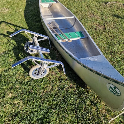 Kajakvagn för att underlätta transport av kajak. Vagnen har använts två gånger. Spännband medföljer.