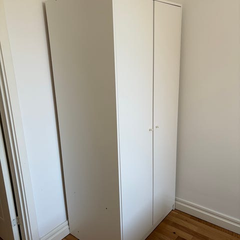 Et IKEA garderobeskap av typen KLEPPSTAD selges rimelig. Grunnen til at det selges rimelig er at det er en knekt planke på baksiden på undersiden av skapet. Denne planken har ikke noen stor funksjon og skapet fungerer som nytt.