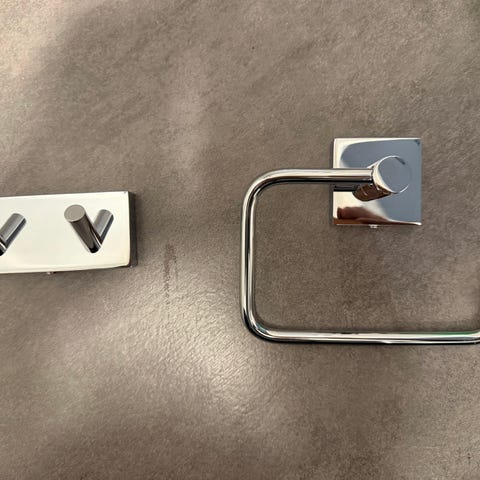 Badrumskit med krokar och toalettrullehållare från Smedbo.