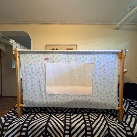 Babybjörn resesäng light i svart. Mycket fint skick, använd fåtal gånger. Lätt att bära och enkel att fälla ihop. Hämtas på Östermalm. Pris 1200 kr (ordinarie pris 2299kr)