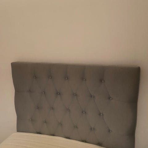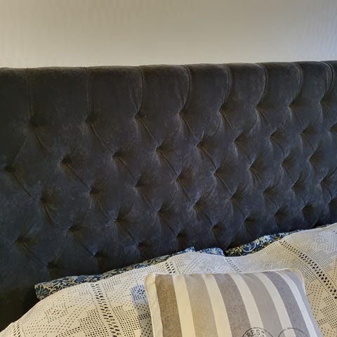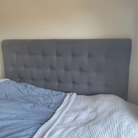 Vacker sänggavel i mörkgrått 210 cm säljes för 600 kr.