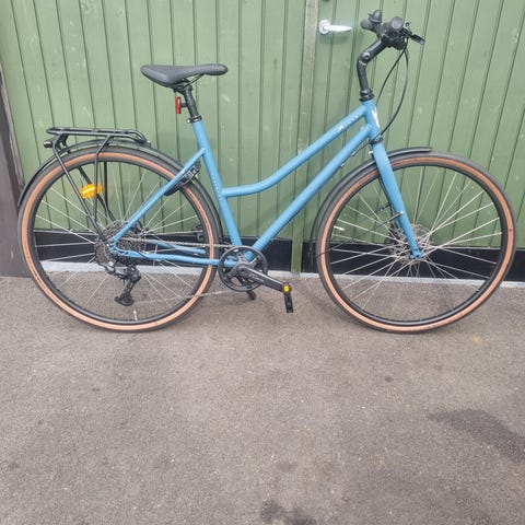 I övrigt fungerar växlar, bromsar och gaffel bra. Fin ram utan bucklor eller sprickor. Bra cykel för pendling och motionscykling upp till 50 km.