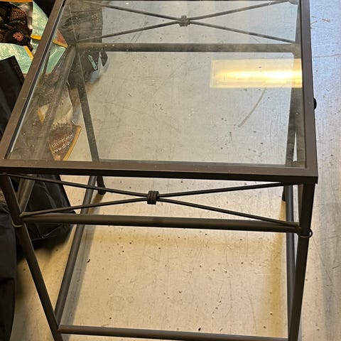 Svart glasbord med måtten 50x50x50 cm. Har fungerat som balkongbord och är därför lite blekt i kanterna. Se bilder.