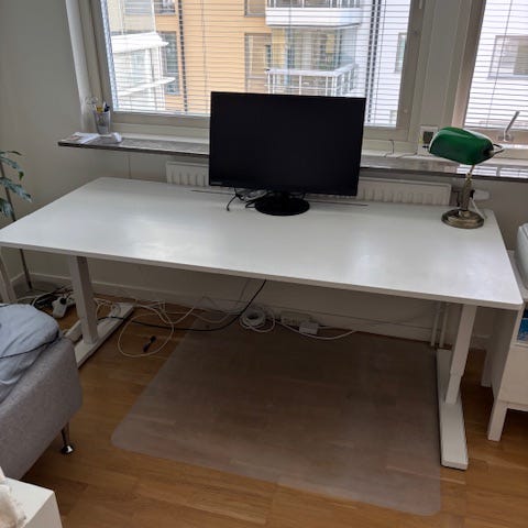 Skrivbord från Direkt Interiör inköpt på DPJ Workspace 2024. 10 års garanti på skrivbordet från tillverkaren. Kostade 4000 kr nytt och är varsamt omhändertaget. Detta är kontorskvalitet.
