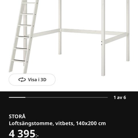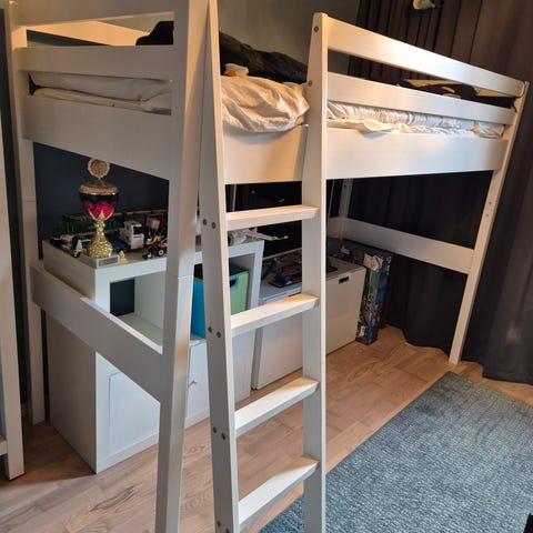 Ikea Storå loftsäng i vitbets + Vestmarka madrass
