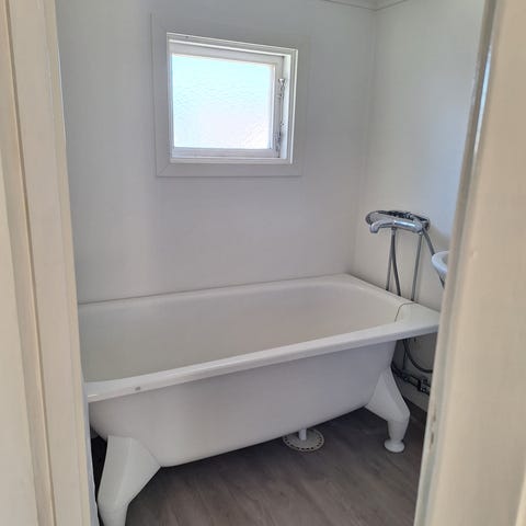 Emaljerat badkar på ben i vit färg. Fristående modell lämpligt för användning som badkar för barn eller som inredningsdetalj. Tillverkat i metall med emaljerad yta. Passar exempelvis i badrum eller som dekorativt inslag i äldre miljöer.
