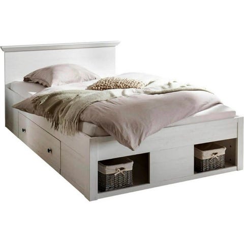 Säng med förvaring i rosa klädsel. Sängen har en stoppad, knapptuftad sänggavel och utdragsförvaring i underdelen, lämplig för exempelvis leksaker, textilier eller andra tillhörigheter.