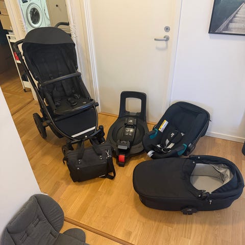 Det finns även ett par fästen som passar ett flertalet Stokke barnvagnar (kolla bild).