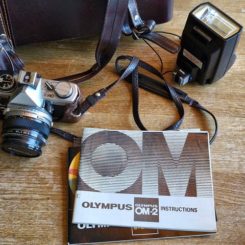 Pentax ME spegelreflexkamera med utbytbart objektiv. Kameran är en analog systemkamera av typen 35 mm filmkamera. På bilderna syns originalmanual samt ett extra zoomobjektiv (MC Zoommacro 38–70 mm) i separat kartong. Kamerahus i svart och silver med tillhörande kameraväska i läderliknande material. Lämplig för analog fotografering med Pentax K-bajonettobjektiv och tillbehör som är kompatibla med Pentax ME-systemet.