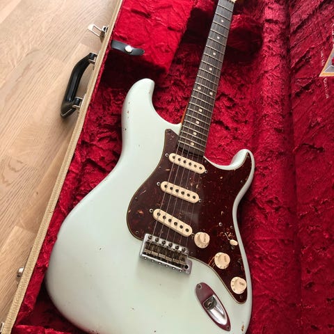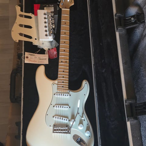 Säljer min Fender American Ultra Stratocaster i färgen Arctic Pearl (vitpärlemorfinish) med rosenträgripbräda. Köpt ny 2019 – aldrig giggad endast använd hemma. Skicket är som ny.