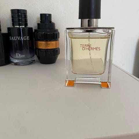 Säljer en lyxig reseflaska av den ikoniska herrdoften Terre d'Hermès. Perfekt storlek att ha i gymväskan, i bilen eller för att testa doften innan man köper en fullstor flaska.