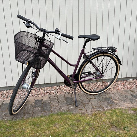 Säljer denna superfina damcykel ifrån monark med 7 inkapslade Shimano Nexus vridväxlar fotbroms samt handbroms fram, ramspänt originallås, ramspänd korg, friktionsfri navbelysning fram ( led belysning).