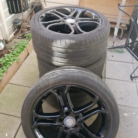 Däcken är slitna och behöver bytas, men fälgarna är i bra bruksskick utan kända problem.