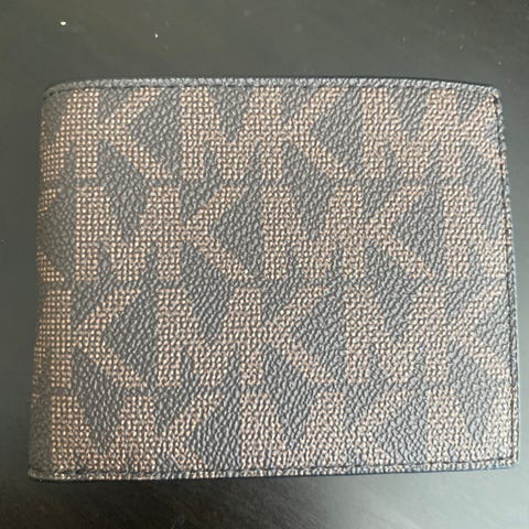 Michael Kors plånbok i svart läder för man. Plånboken har vikbar design med flera kortfack, sedelfack och fack med transparent fönster för till exempel id-kort. Diskret MK-logga i metall på utsidan och Michael Kors-tryck på insidan. Passar för dagligt bruk och förvaring av kort, kontanter och legitimation.