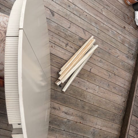 Längd bord: 140 cm, bredd 100 cm, iläggsskiva bredd 60 cm.