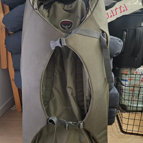 Haglöfs ryggsäck med extern ram i metall. Väskan är orange med kontrasterande detaljer och justerbara bärremmar. Topplock med dragkedjefack samt snörstängning till huvudfacket. Ytterfack på sidan och flera remmar för att fästa utrustning. Passar för vandring, friluftsliv och längre turer där stabil bärkomfort och god packvolym behövs.