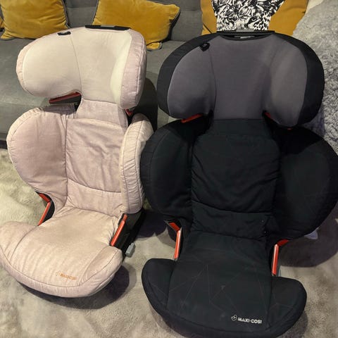 Aldrig varit utsatta för någon krock den rosa har dock ett litet hål i sitsen och har blivit solblekt på ryggen. I övrigt är de i bra skick. 300kr för bägge
