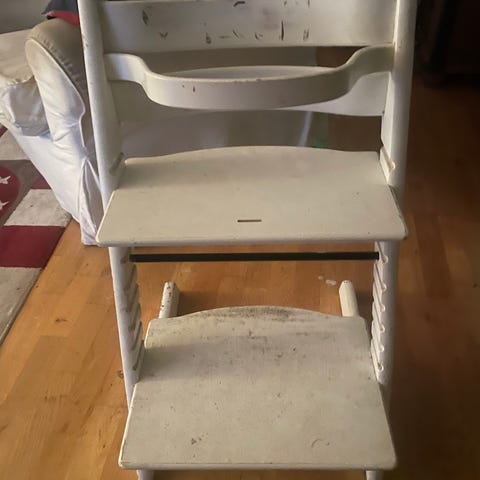 Tripp trapp stol av den ”gamla” modellen. Är av ”använt” skick.