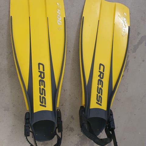 Cressi Frog Plus simfötter i gul och svart färg. Öppen häl med justerbara remmar för att passa olika fotstorlekar och användning med neoprenstövlar eller bar fot. Blad i plast/gummi-kombination för balanserad flexibilitet och kraftöverföring vid snorkling och dykning. Lämpliga för användning i både pool och öppet vatten.