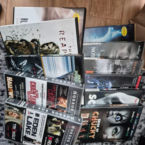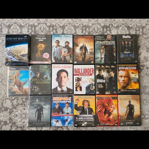 Paket med 22 action/drama filmer. Alla är kontrollerade och de är i bra skick. Enstaka ytliga repor kan förekomma.
