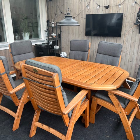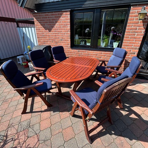 Trädgårdsgrupp Hillestorp bord och 6 stolar.