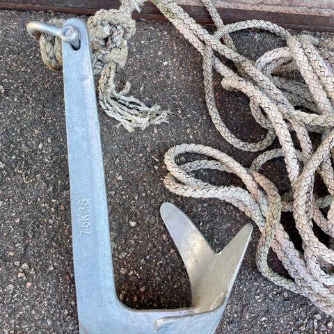 FOB båtankare på 16 kg i galvaniserat stål. Ankaret är av plog-/delta-typ med två flänsar och längsgående schackel- och skaftkonstruktion.