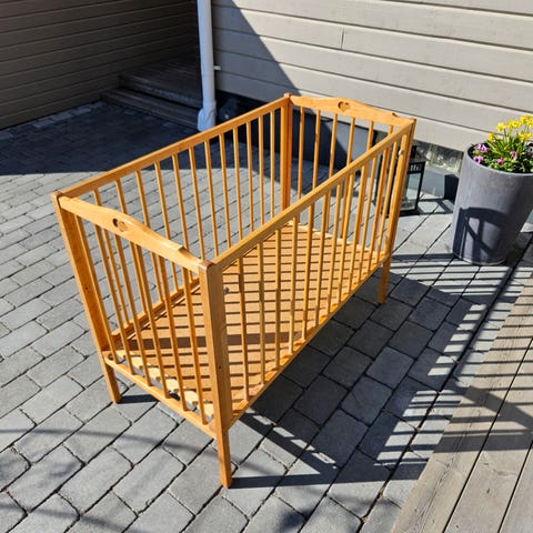Ikea spjälsäng trä