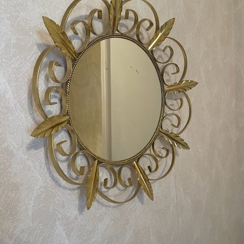 Spegeln i form av en sol. Ytterdiameter 120cm diameter spegelglas 35cm.