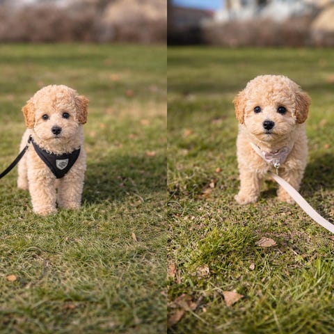 Valparnas mamma Àr en svart poochon; 50% toypudel och 50% bichon frisé. Hon bor i vÄr familj med tre barn i olika Äldrar och Àlskar barnen och deras kompisar. Otroligt lugn, vÀnlig och klok hund. Ca 4 kg.