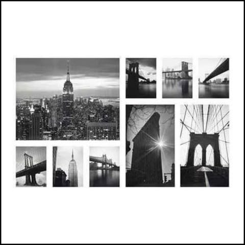 IKEA GRÖNBY väggdekoration set i svartvita motiv. Setet består av flera tryck i olika rektangulära format som kan hängas tillsammans som en tavelvägg. Motiven föreställer stadsmiljöer och arkitektur i svartvitt. Passar för upphängning i exempelvis vardagsrum, sovrum eller hall. Levereras i originalförpackning enligt bilderna.