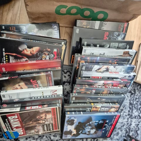 Paket med 10 action/äventyrsfilmer. Alla är kontrollerade och de är i bra skick. Enstaka ytliga repor kan förekomma.