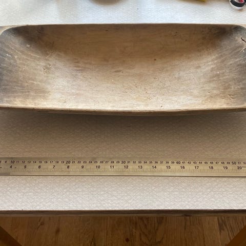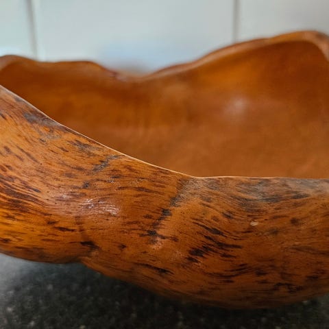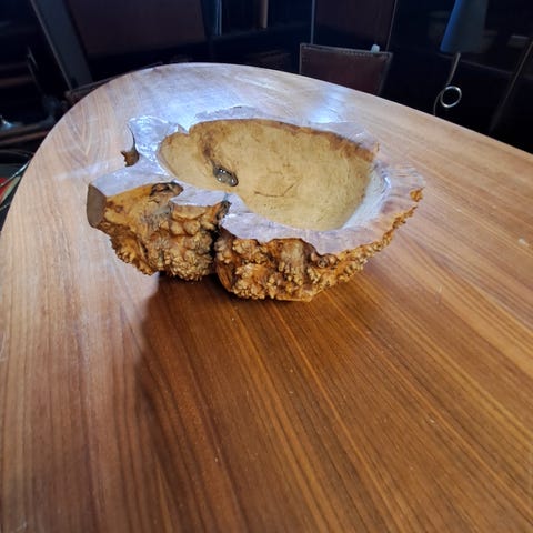 Stor och gedigen vrilskål i masurbjörk. Inköpt för 1500:- i vintagebutik. Finns på Tradera för 2.500:- Säljes billigt då den tar för stort plats hos oss.