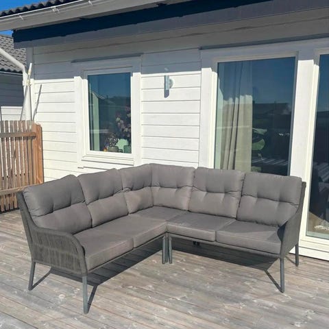 Lätta utemöbler svart metall gråa dynor