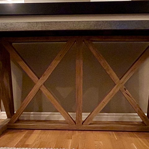 Bänk från Atwood i svart metallram och klädd sits i linne. Vadderad.