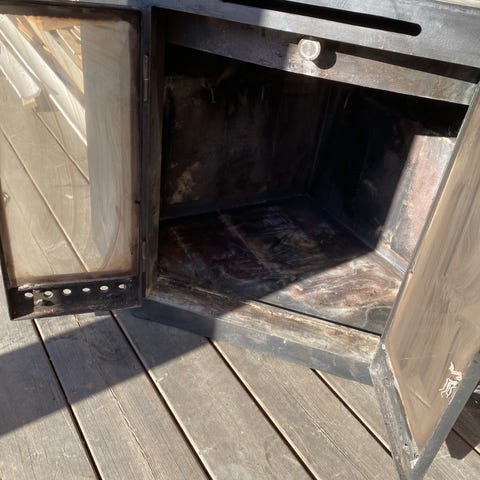 Contura VX öppen spis i svart utförande. Front med glasluckor och handtag, samt luftintag i nederkant. Rökutgång baktill. Passar för uppvärmning av inomhusmiljö där eldstadsinsats kan installeras enligt gällande regler och tillsammans med godkänd skorsten.