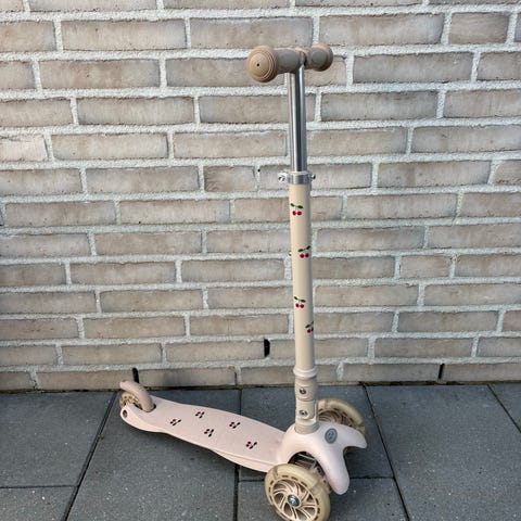 Sparkcykel för barn med tre hjul. Modellen har två hjul fram och ett hjul bak för extra stabilitet.