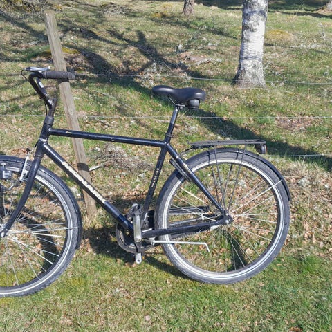 Inte ny men servad och allt funkar som det ska. Nya slangar och reflexer. Ny ringklocka, lampa med batteri.