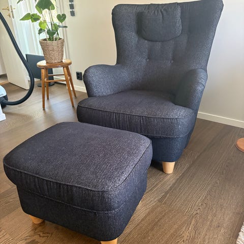 Fåtölj med fotpall och sidobord Tillverkare Br Andersson Eksjö
