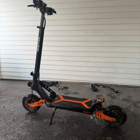 Förra ägaren bytte batteri, då det gamla visade sig vara en brandrisk och saknar tyvärr stänkskydd till kedjan. Laddare, två nycklar samt en väska för diverse medföljer. Räckvidd på den här typen av fordon är svårt att ange exakt eftersom det beror på en mängd olika faktorer, men under goda förhållanden kan Velocifero MAD 1600W ta dig upp till 30 km på en laddning. Säljer då den inte används längre.