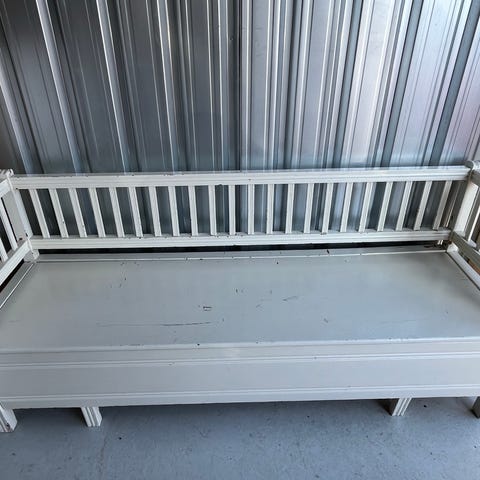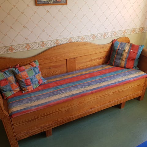 Soffa med utdrag och öppningsbartlock i mycket bra skick kom med bud.