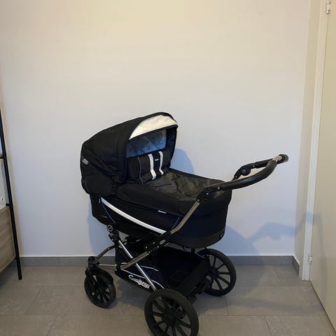 Emmaljunga barnvagn ligg- och sittdel svart rutmönstrad