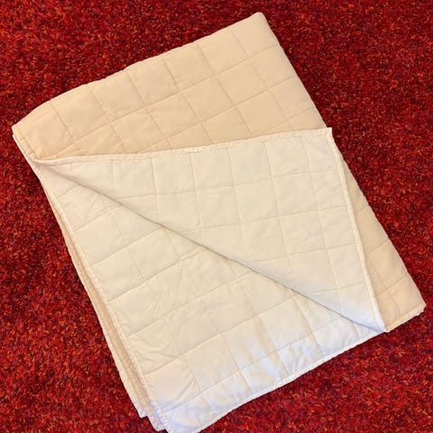 IKEA MJUKPLISTER överkast i beige färg. Överkastet har quiltat rutmönster och är avsett att användas som sängöverkast. Passar för att täcka säng och ge ett enhetligt intryck i sovrummet. Material enligt tvättrådslapp, maskintvättbart enligt angivna instruktioner på etiketten. Skickar med kudde i samma material och färg samt en till mindre prydnadskudde.
