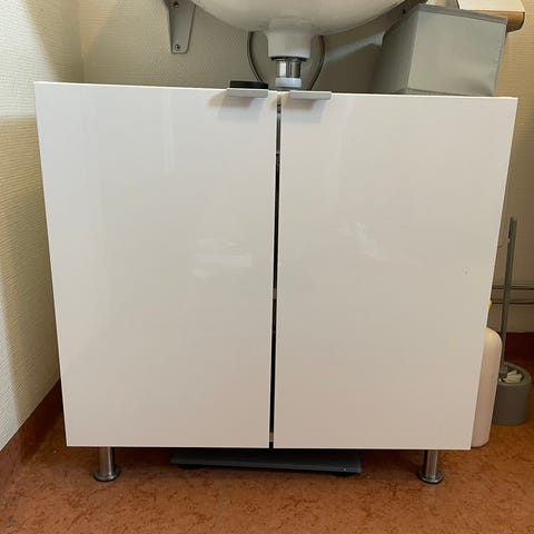 Underskåp som suttit i badrum, säljes i befintligt skick. Bänkskiva finns och kan köpas till.