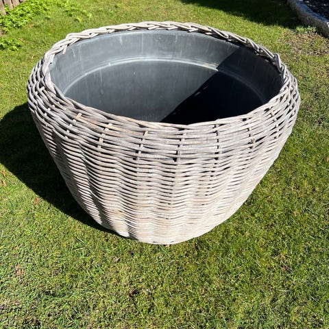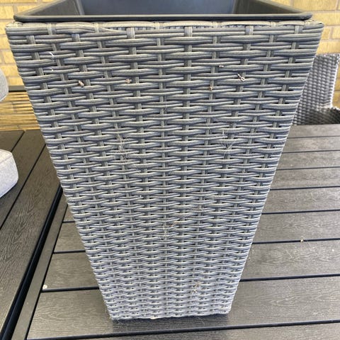 Helt ny regnvattentunna i grå plast med vågformat mönster på utsidan. Locket gör det möjligt att ha flera krukor. Koppling från stuprör medföljer samt borr för göra hålet i stupröret. Tunnan är cylindrisk och har anslutningar för tappkran och utlopp nära botten. Lämplig för uppsamling och förvaring av regnvatten i trädgård eller vid husvägg. Tillverkad i väderbeständig plast som tål utomhusbruk samt frystålig.