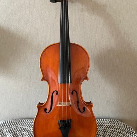 Fiolen säljs komplett med stråke, hakstöd och fodral.