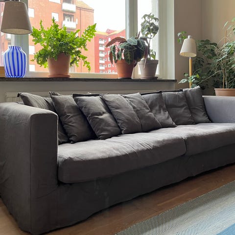 Soffa från decotique. Klädsel smokey granite. Behöver en tvätt men inga skador på soffan.