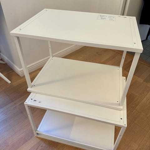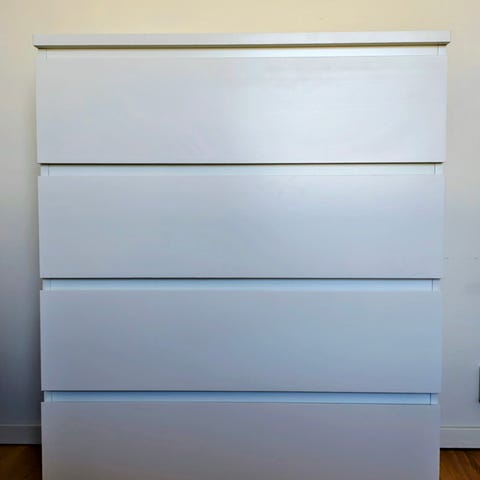 Säljer en stilren vit lådhurts/byrå med 3 lådor från IKEA, modell Platsa. Den har spår av användning på både toppskiva och den översta lådfronten, se bild, därav det lågt satta priset.